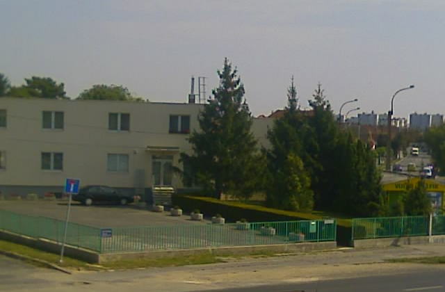 Az iroda bejáratát a gyalogosan érkezők a Pápai út felöl, az alábbi képen látható kis zöld kapun keresztül érik el.